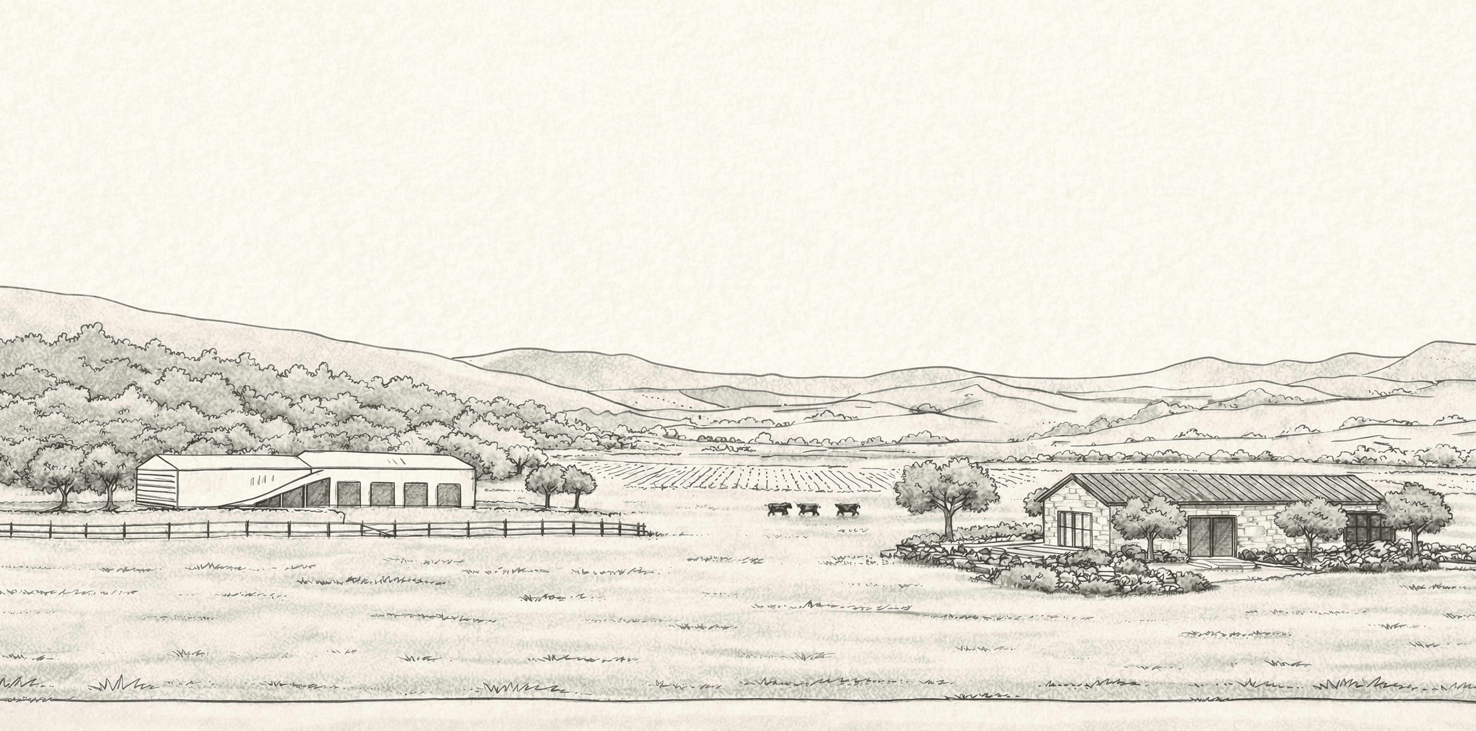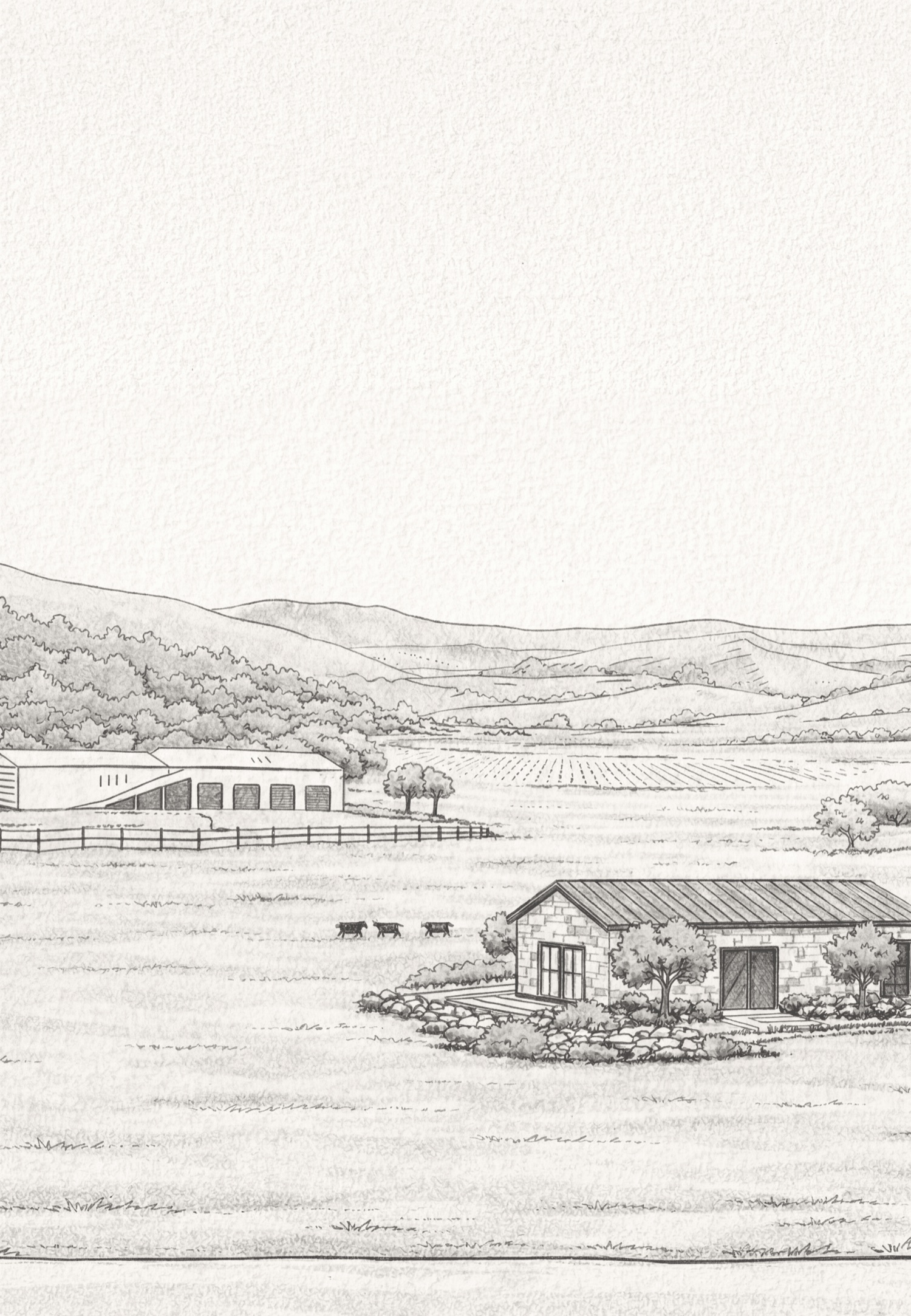 In 2018, a conversation with SingleThread chef Kyle Connaughton set something unexpected in motion. He spoke about sourcing nearly everything for his Michelin star kitchen in Healdsburg within a forty mile radius, except for the prized A5 wagyu flown in from Japan. The idea lingered and fueled a well-researched passion project. Knights Valley Wagyu was established on the ranch, an onsite herd of roughly eighty wagyu raised for champion genetics and allowed to roam freely across the rolling pastures. “The vision was simple,” Gordon says. “Raise the very best wagyu we could, and share it only with chefs we admired, within bicycling distance of the ranch.”